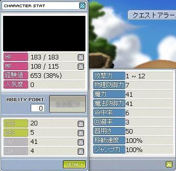 ③INT全振り、Lv上がる前にMH20。10Lv時点のMPは160。